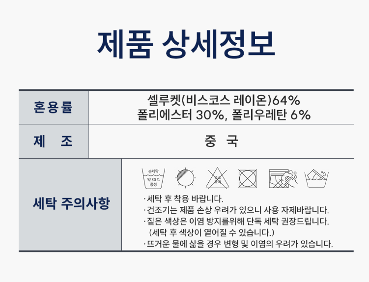- 동일 상품의 컬러, 사이즈 등 옵션 교환을 원칙으로 하며 타 상품 교환은 환불 후 재구매로 정의한다. 교환의 경우 구매 회원이 왕복 배송비를 부담한다.