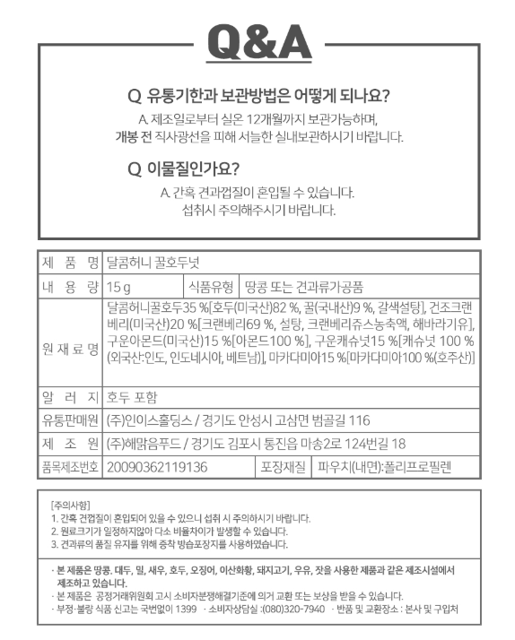 달콤허니 꿀 호두 넛츠 450g (15g X 30봉)